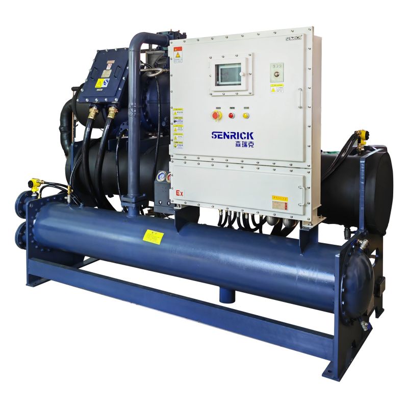 防爆冷水機一般使用在石油、化工行業、煤礦行業等易發生爆炸的行業中。說到如何選擇防爆冷水機我們要考慮的就是其性能,現在的防爆冷水機一般都是采用防爆壓縮機制成,而控制電器采用的防爆控制箱,電器配件由防爆饒性管連接。我們需要檢測這兩個部分零件的防爆能力,從中進行冷水機的選擇。